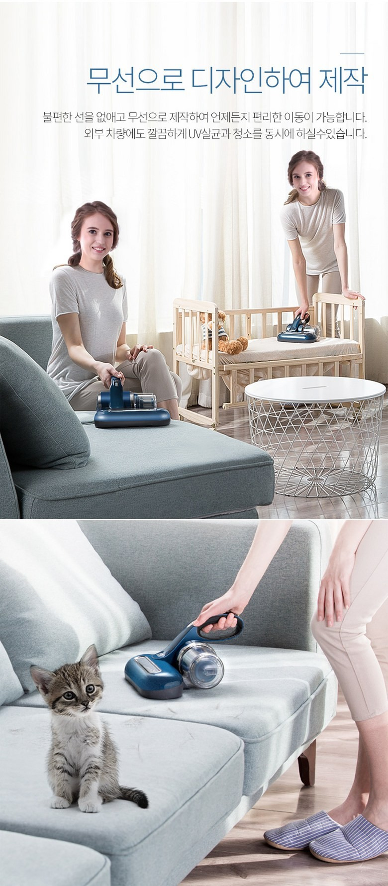 이 제품을 처음 접했을 때 솔직히 반신반의했어요. '과연 무선으로 침구를 청소할 수 있을까?' 하는 의심이 가득했거든요. 하지만 한 번 사용해보고 그 생각이 바뀌었어요. 디자인이 슬림하고 고급스러워서 손에 쥐는 느낌도 좋았거든요! 처음 사용했을 때, 간편함에 감동했습니다. 별도로 전선이 없으니 이리저리 옮기기도 편하고요!