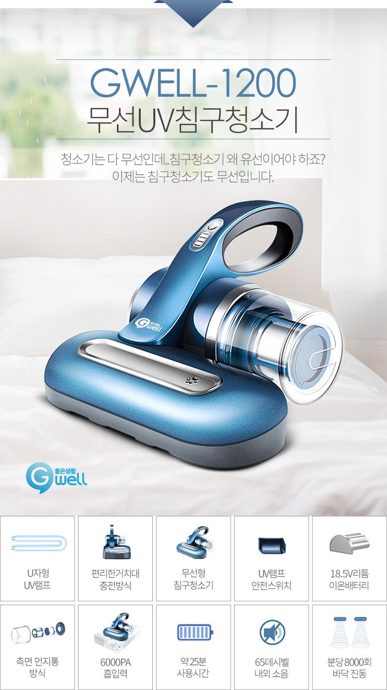좋은생활지웰 UV 무선 침구 청소기 세트형 GWELL-1200 - 침구청소기 | 쿠팡
